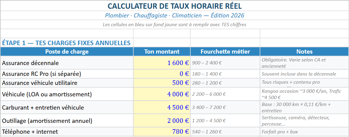 Intègre TOUTES tes charges réelles : décennale, véhicule, RGE, fluides, URSSAF...
